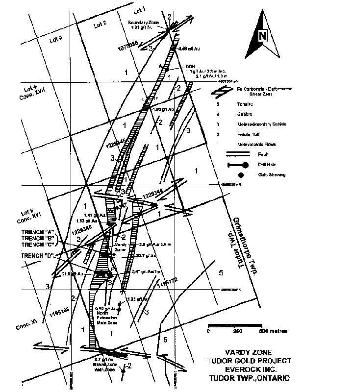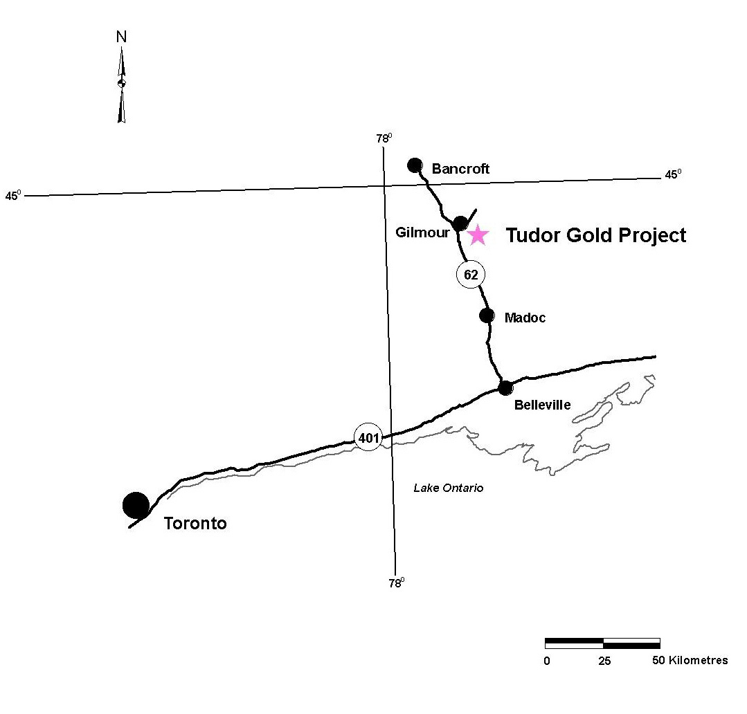 TUDOR金礦有兩個黃金發現地︰主礦區和Vardy-Homestake礦區。此項目主要位於沿Moira河剪碎帶區域以及Gilmore剪碎帶的交界處。